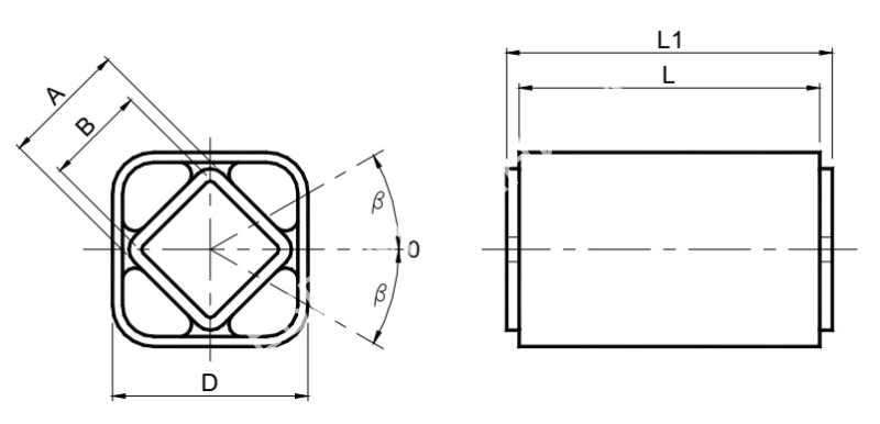 Упругий элемент VIB Type AR-T 30 х 80, аналог ROSTA DR-S 18х80 работает в угловом диапазоне +/-30°Материал исполнения внешнего корпуса и внутренней трубы квадратного сечения -сталь.