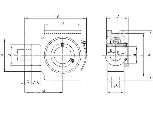 Подшипниковый узел UCT 212 c самоустанавливающимся подшипником UC, со стопорным винтом.Корпус типа T. Материал корпуса - Чугун.Используется как натяжное устройство в конвейерах и другом оборудовании.