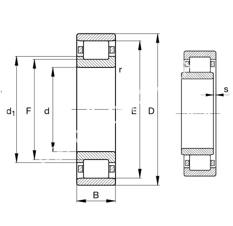 Роликовые подшипники типа N и NU воспринимают только радиальные нагрузки. Являются плавающими, наружные и внутренние кольца могут быть смещены относительно друг друга в осевом направлении. Подшипники типа NU могут комбинироваться с фасонными кольцами типа HJ. Рабочая температура от -30 °С до +150 °С. Подшипники с полиамидным сепаратором предназначены для температур до +120 °С.Характеристики
