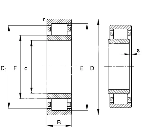 Роликовые подшипники типа N и NU воспринимают только радиальные нагрузки. Являются плавающими, наружные и внутренние кольца могут быть смещены относительно друг друга в осевом направлении. Подшипники типа NU могут комбинироваться с фасонными кольцами типа HJ. Рабочая температура от -30 °С до +150 °С. Подшипники с полиамидным сепаратором предназначены для температур до +120 °С.Характеристики