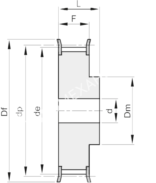 Шкив зубчатый под расточку, для ремней с профилем зуба H 0,5'' (12,7mm) и шириной ремня 200 (50,8mm) с числом зубьев шкива Z= 32. Применяются в приводах для передачи крутящего момента. Материал шкива St. Вес детали 6,17 кг. Торговая марка EMT.Характеристики
